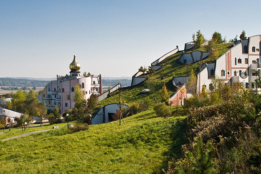 | Зелень окружает вас повсюду, даже на пологих крышах зданий растут деревья и трава. А сами здания раскрашены в яркие цвета и похожи на сказочные домики или на уютные норки. | ||||||