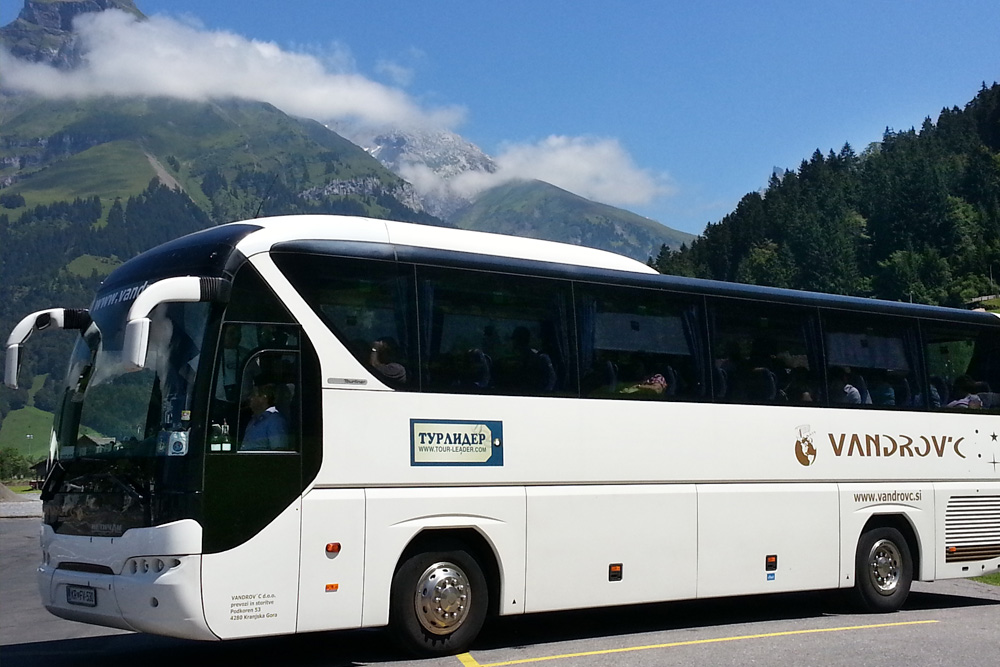Утром мы едем на озеро Бриенц и по узкой дорожке на нашем автобусе